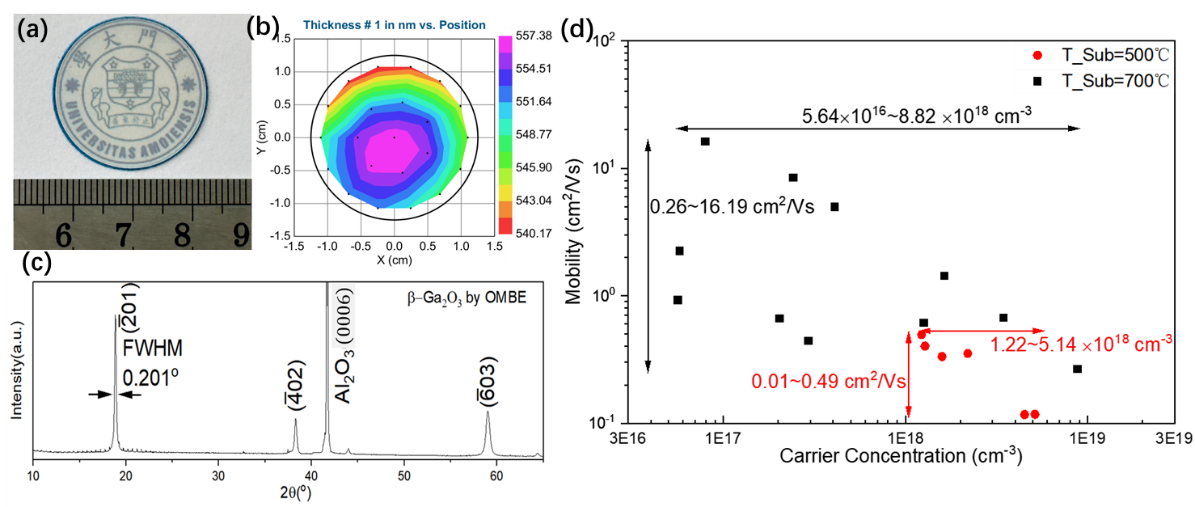 (d):氧化镓n型掺杂调控载迁移率与载流子浓度图。