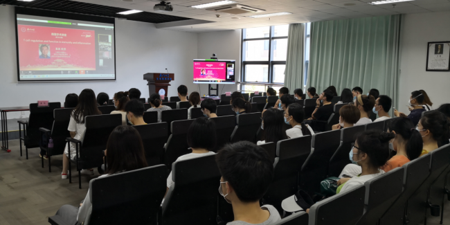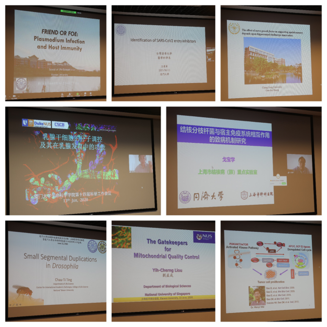 本次会议特别邀请到来自清华大学的董晨院士、同济大学戈宝学教授、新加坡国立大学刘益成副教授、杜克-新加坡国立大学医学院符乃阳研究员、台湾大学丁照棣副教授、台湾长庚大学黄国正副教授、台湾清华大学王慧菁副教授、中国科学院分子细胞科学卓越创新中心高大明研究员等校外知名专家以及我院长江学者特聘教授林圣彩、国家杰出青年科学基金获得者吴乔等院内教授代表围绕免疫、代谢、传染病、肿瘤等生物医学相关领域做精彩的学术报告。群贤共话学术前沿,与会师生热情高涨、互动频繁,不断交流碰撞思想智慧的火花,开启一场线上线下即时共享的学术盛宴。