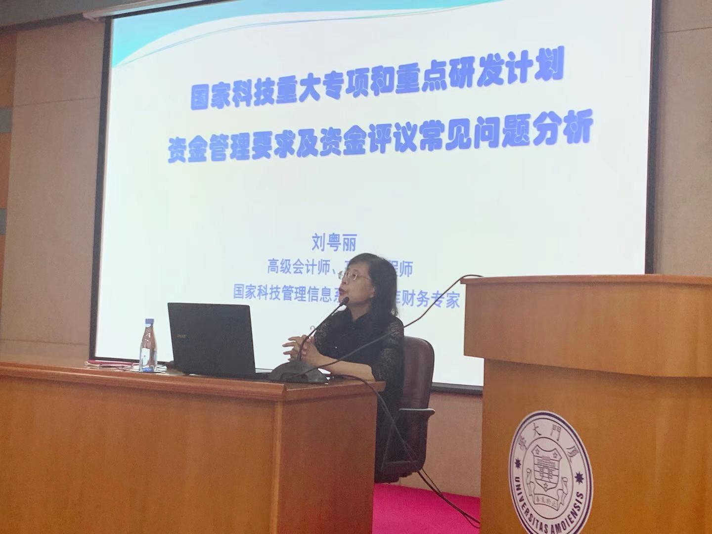 此次讲座共分两场,分别在翔安校区和思明校区举行,科技处副处长赖日泉主持会议。科技处、财务处、各学院科研秘书、财务秘书及师生共160余人参加了报告会。