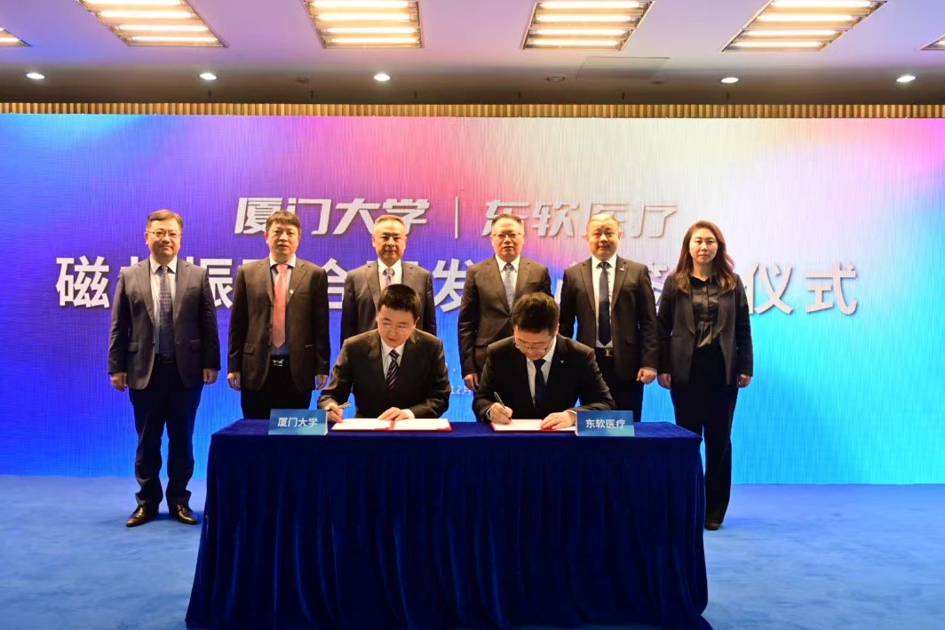 随后,厦门大学电子科学与技术学院屈小波教授与东软医疗蒋先旺博士代表校企双方签约。