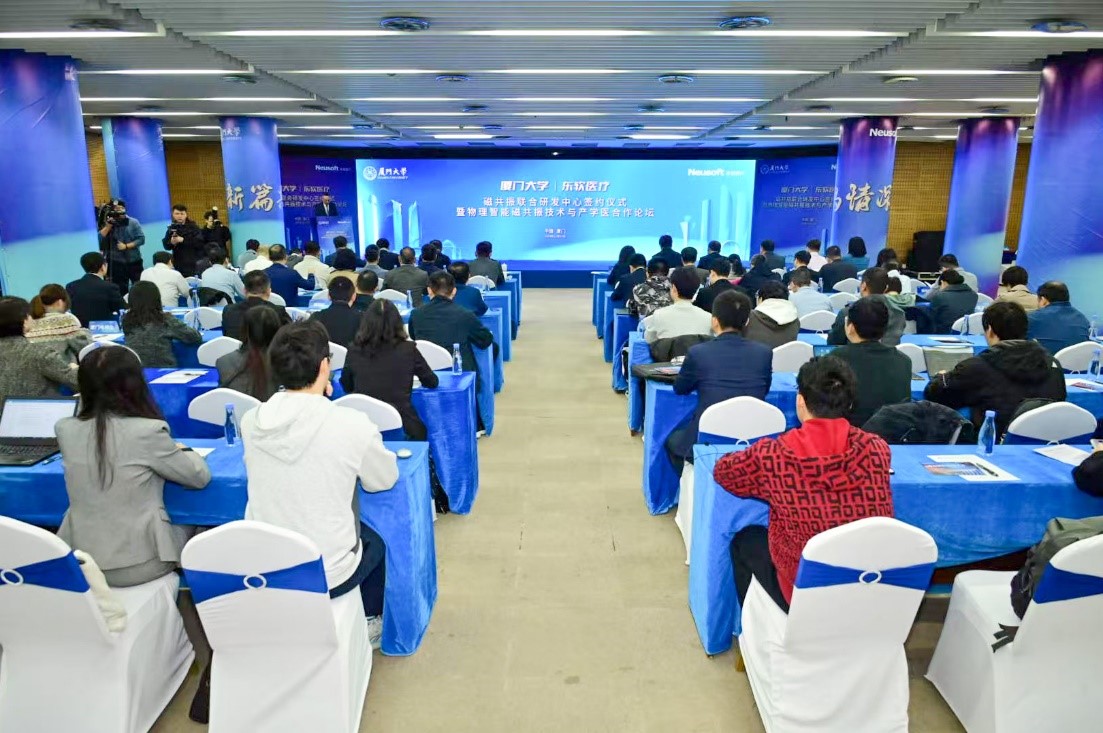 12月13日,厦门大学—东软医疗磁共振联合研发中心签约仪式暨物理智能磁共振技术与产学医合作论坛在厦门大学科学艺术中心举行。厦门大学副校长李智勇,厦门大学附属第一医院原院长王占祥教授,东软医疗党委书记、高级副总裁宋奇,以及学术界、医疗界、企业界代表出席仪式。厦门大学电子科学与技术学院书记石慧霞主持仪式。