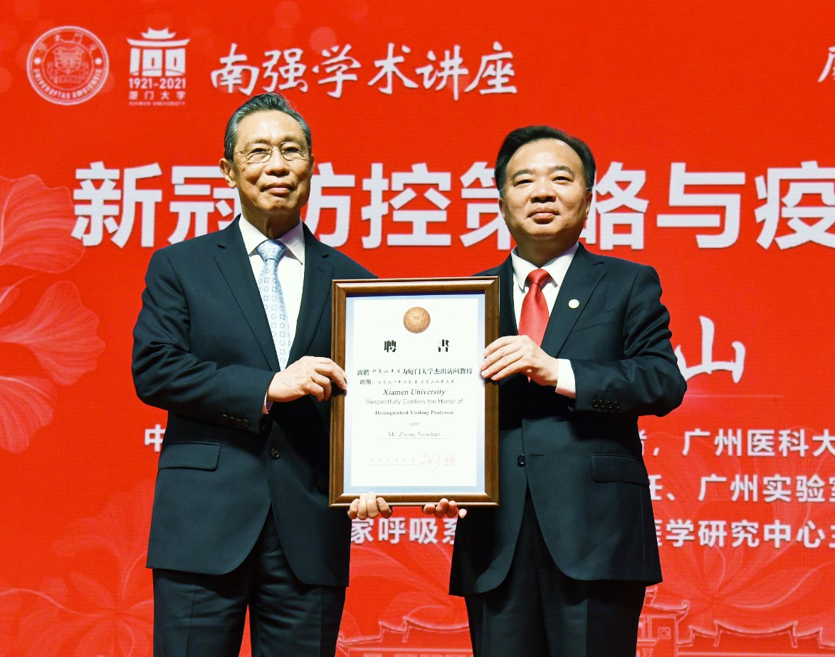 钟南山表示,自己是厦门人,对家乡怀有深厚的感情,厦门大学是所著名高等学府,医科建设成绩斐然,在今后的工作中定当全力以赴、紧密合作,共同推动厦大医学学科发展。