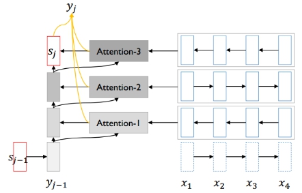 该论文提出一种深层的注意机制,用于融合深层编码器和深层解码器之间的语义信息,从而进一步增强翻译系统建模源语言和目标语言之间翻译关系的能力。传统深层神经机器翻译模型主要关注如何深化编码器或解码器的结构,忽略了注意机制的深层化建模,不利于复杂翻译关系的处理。该论文提出的模型可以利用低层注意机制学习到的上下文信息,自动地判定如何从相应的编码层中提取、过滤源端语义信息并融入到相应的解码层之中,从而使高层注意机制拥有更充分的信息来建模深层次的翻译关系,并促使模型的隐层表示更适合目标词汇的预测。在中英、英德和英法三个翻译任务上,新模型取得了近乎最先进的翻译结果。
