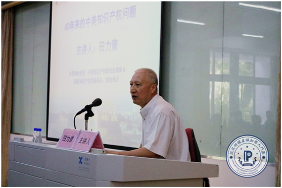 讲座伊始,田力普先生介绍了当下世界范围内的知识产权保护问题,并简单介绍了我国知识产权相关法律立法历程。随后,田力普先生以最近中美贸易战为切入点,扼要地指出本次中美贸易战绝非偶然,而是长期以来中美各种经贸矛盾的集中表现,而中美知识产权问题便是其重中之重。接着,他以40年来的中美知识产权问题交锋历史沿革逐步展开论述,讲述了中美知识产权问题角力的基本情况。他认为,中美知识产权问题纠葛由来已久,从十一届三中全会我国确定改革开放起,一直到最近的中美贸易战,无不贯穿着知识产权问题争议。田力普先生随后就中国加入世贸组织的过程中涉及到的知识产权问题进行了介绍,他说,中国加入世贸组织过程中,TRIPs协定成为了一个重要问题,在中美知识产权屡次谈判过程中,美国就知识产权问题向中国提出了诸多要求,在这一整个过程中,美国一直强势要求中国加强知识产权保护。