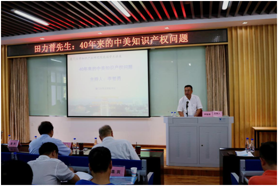 5月29日下午,全国政协委员、中国知识产权研究会理事长,国家知识产权局原局长、党组书记田力普先生莅临厦门大学知识产权研究院,以“40年来的中美知识产权问题”为题在法学院B137报告厅作专题讲座。本次讲座由法学院党委李智勇书记主持,厦门大学社科处处长陈武元教授、厦门大学科技处知识产权办公室邹益珍主任、厦门大学法学院丁丽瑛教授,以及平顶山市科技系统人员、厦门大学知识产权研究院师生等嘉宾参加了本次讲座。
