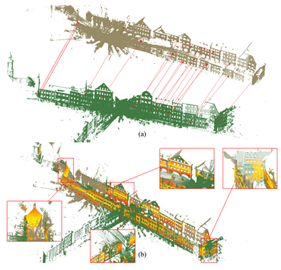 该论文提出了一种基于协方差描述子和博弈论的成对点云配准算法,用于解决由高性能激光扫描仪获取的高密度三维点云数据的配准问题。三维点云局部特征描述在三维目标识别与分类、点云语义分割、点云配准以及三维形状检索等应用中具有关键性作用,是目前三维计算机视觉领域一个新的研究热点。现有的点云局部特征描述主要采用几何信息构建描述向量,没有充分利用三维点云的所有信息量(包含几何、颜色、强度信息等),针对该问题,早、宰大为等提出了一种新的基于协方差矩阵的特征融合方法,通过充分利用三维点云的信息量来构建特征描述,并利用协方差矩阵的统计特性来描述特征之间线性共性关系进行特征融合。该成果在鲁棒性以及抗噪性等方面超过了当前点云特征描述技术发展的最高水平。另外,宰大卫等还提出了一个有效的基于博弈论的对应点对提取算法,通过分析全局的对应点对几何约束关系,快速剔除海量错误点对。该算法简单有效,显著地提高了当前三维点云配准的精度及鲁棒性。